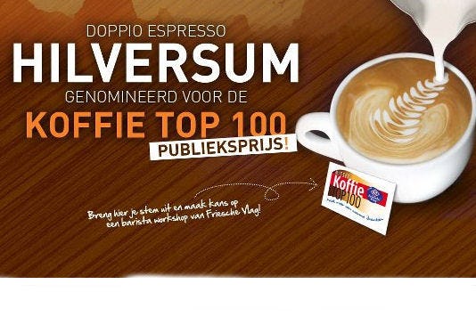 In de Koffie Top 100 staat Doppio Espresso Hilversum op nummer 25. De hoogst genoteerde Doppio staat op nummer 8, dat is het filiaal in Joure. Zwolle staat op plek 19.