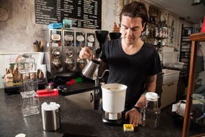 De laatst wordt bij The Village, nummer één in de Koffie Top 100 van 2014, dan ook veel gebruikt, de mannen hebben twee versies van de op het oog eenvoudige kunststof emmer: een van twee liter en een grote van tien liter.