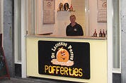 Maandenlang moest Utrecht het stellen zonder poffertjes, nu heeft de poffertjeswinkel tijdelijk intrek genomen in de IJswinkel van Venezia, die tijdens de wintermaanden toch niet in gebruik is. Daar lanceerde de bekende pofferbakker het nieuwe togo-concept.