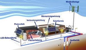 De energiebesparende maatregelen zijn bijna te veel om op te noemen. Er wordt onder andere gewerkt met aardwarmte, warmteterugwinning, zuinige LED-verlichting, zonne- en windenergie, opvang van regenwater voor de toiletten en milieuvriendelijke reiniging van afvalwater. Het restaurant heeft door al deze maatregelen geen gasaansluiting nodig.