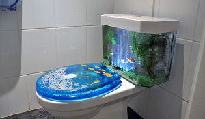 Regelmatig klinken er verraste kreten op uit het toilet in cafetaria Bon Appetit in Rijsbergen. Niet verwonderlijk als je bedenkt dat er vissen ...
