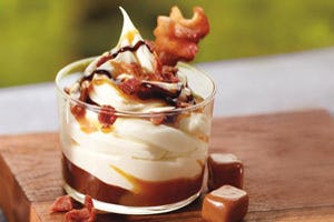 De hamburgerketen lanceerde het dessert, de Bacon Sundae, afgelopen week als onderdeel van een zomers barbecue menu. Dat bevat een serie speciale hamburgers met barbecuesaus en frites gemaakt van sweet patato’s (zoete aardappelen). Het ijsje werd begin dit jaar getest in een aantal restaurants en was  daar een succes. De zoet/zoute Bacon Sundae bestaat uit vanille-ijs, caramel saus en heeft een topping van caramel fudge, stukjes bacon en wordt afgemaakt met een krokante plak gebakken bacon.