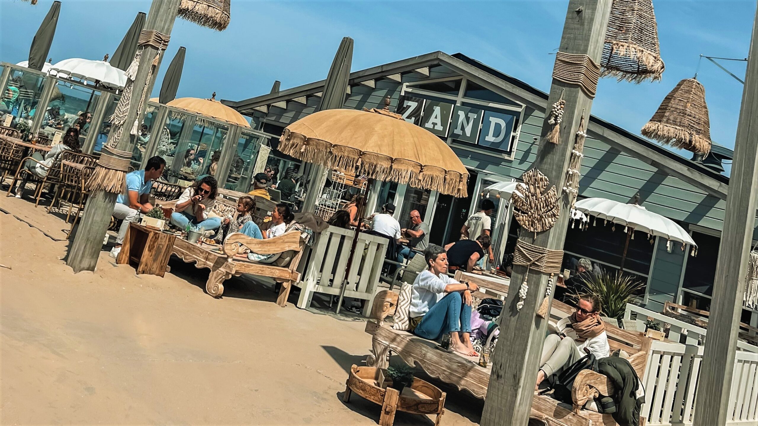 Het enige strandpaviljoen in de Terras Top 100 2023 én Provinciewinnaar van Zuid-Holland vinden we op plek 13 in de lijst en met de voeten in het Katwijkse zand. Het paviljoen is grijs, het terras een houten vlondervloer. Daarop licht- en donkergrijze gevlochten stoelen en tafeltjes met houtprint. Vooral de parasols vallen op: verschillende soorten klassiek ogende bolle parasols met kwastjes.