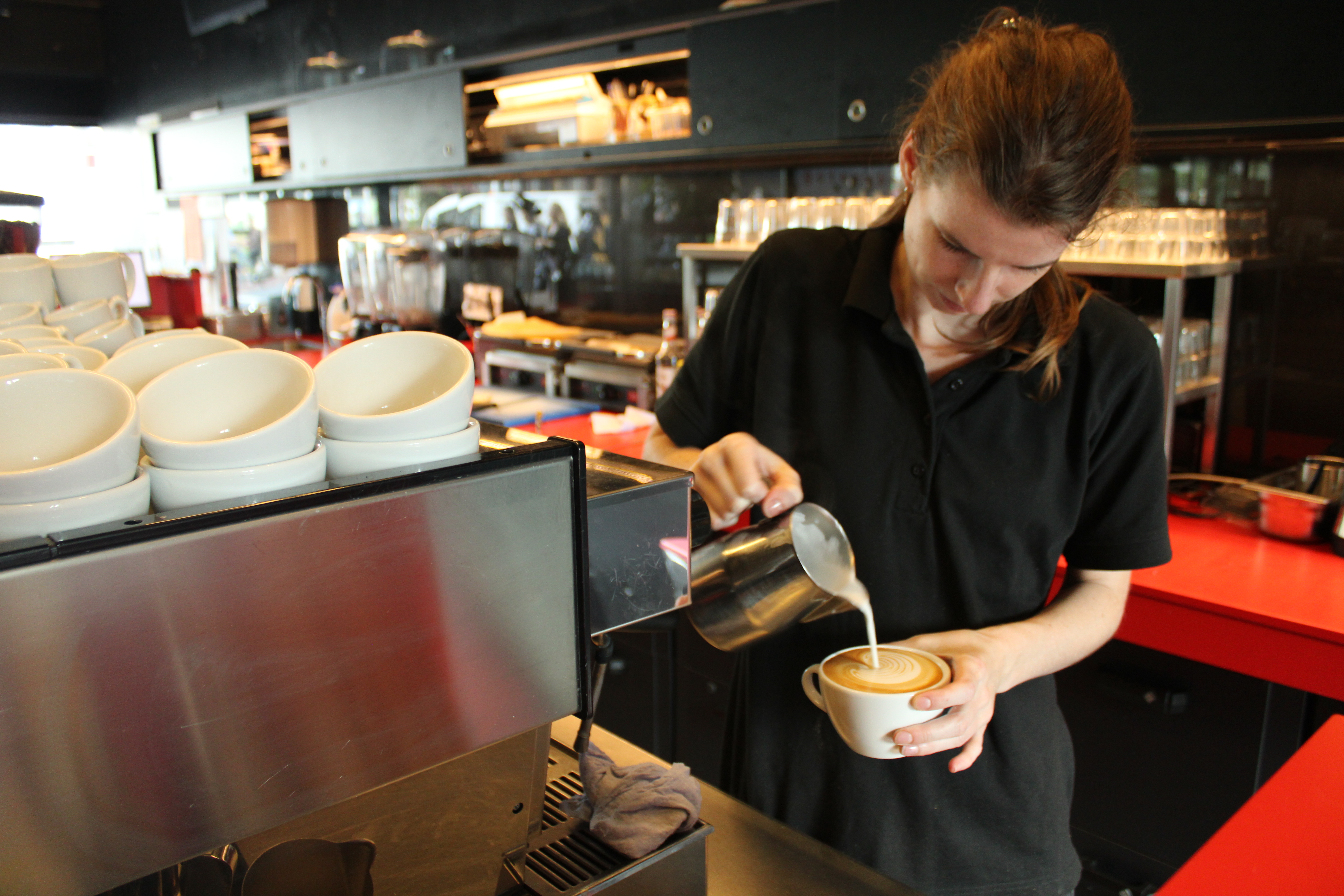 De Baron - aan de Markt in Harderwijk met een terras voor de deur - heeft te maken met flinke koffiepieken. Om die op te vangen is een tweede espressomachine geplaatst en weten de barista's van aanpakken.