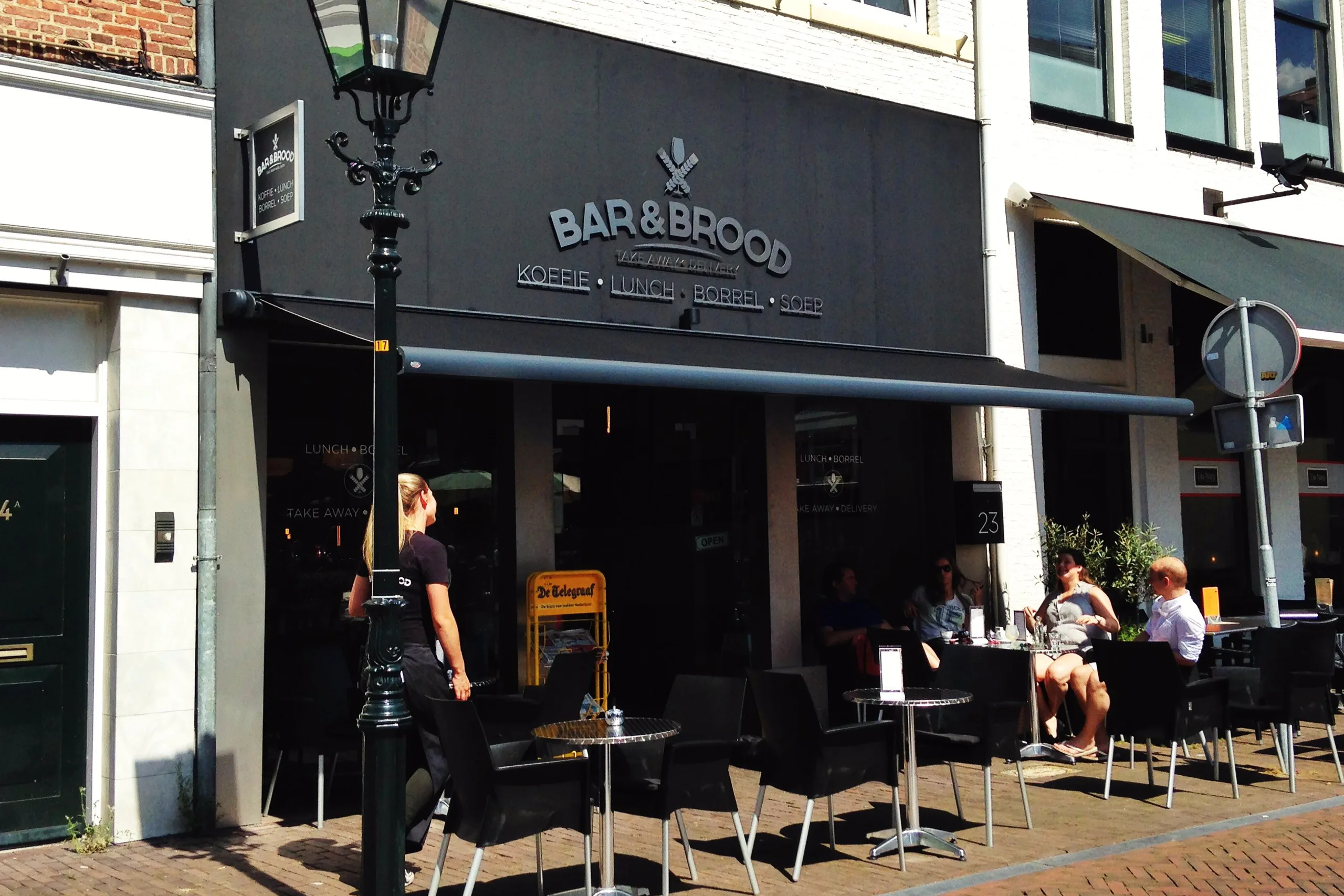 Strakke en stijlvolle lunchroom, waar de gevel en tafels zo zwart zijn als ristretto. Gastvrije medewerkers: ook al zit het terras vol.