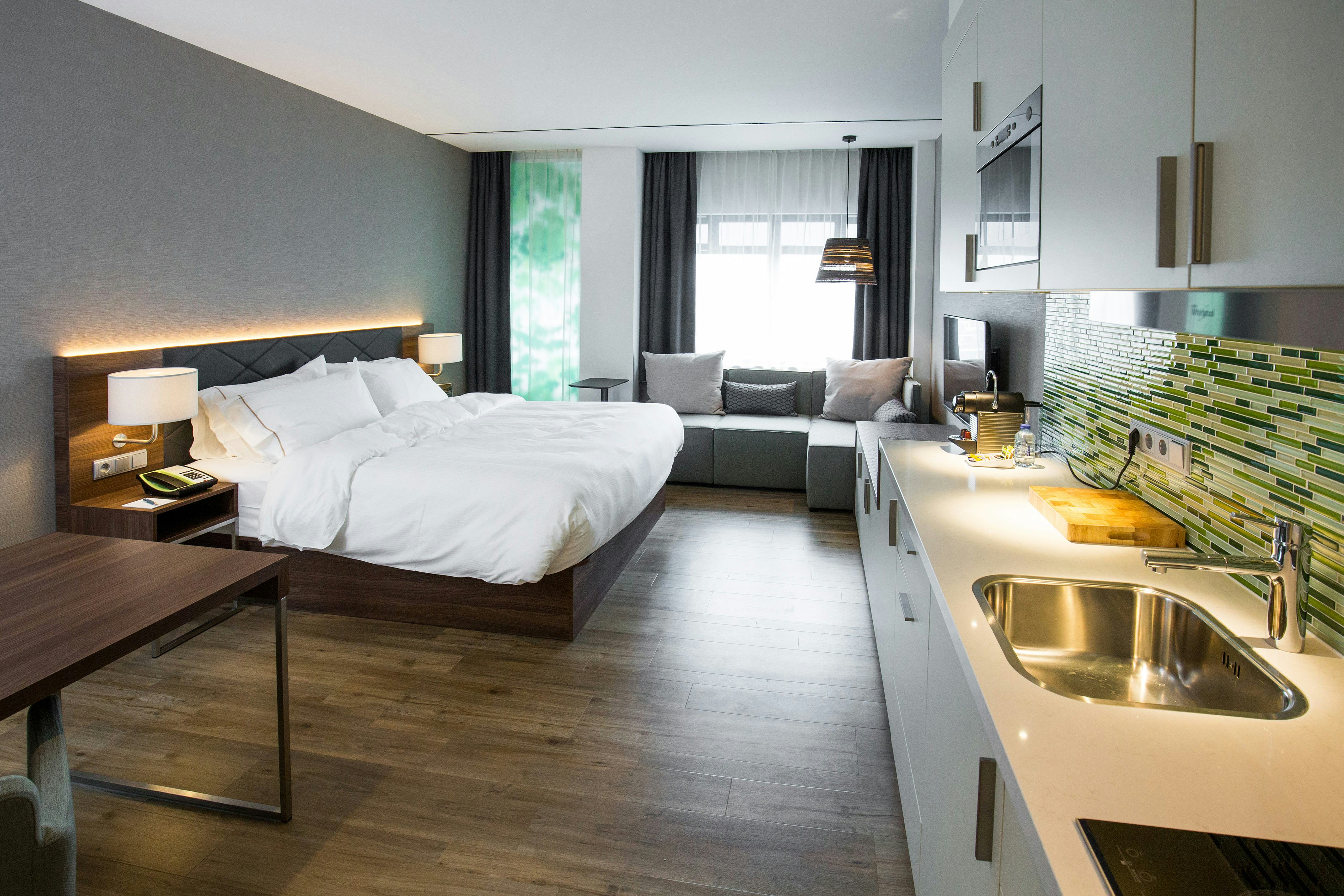 In Amsterdam is het tweede Element hotel van Europa geopend. Het extended stay-concept van Starwood is groen en biedt gasten veel keuzemogelijkheid. Onder meer de keuze om zelf te koken in het keukentje op elke kamer. Zo'n keuken op de kamer maakt wel dat heel goed moet worden gekeken naar koelkast en pannen.