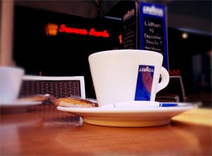 Lof voor de koffie in deze vestiging van Bagels & Beans. 'Mooie volle smaken voor de lungo. Full bodied en mooi in balans.