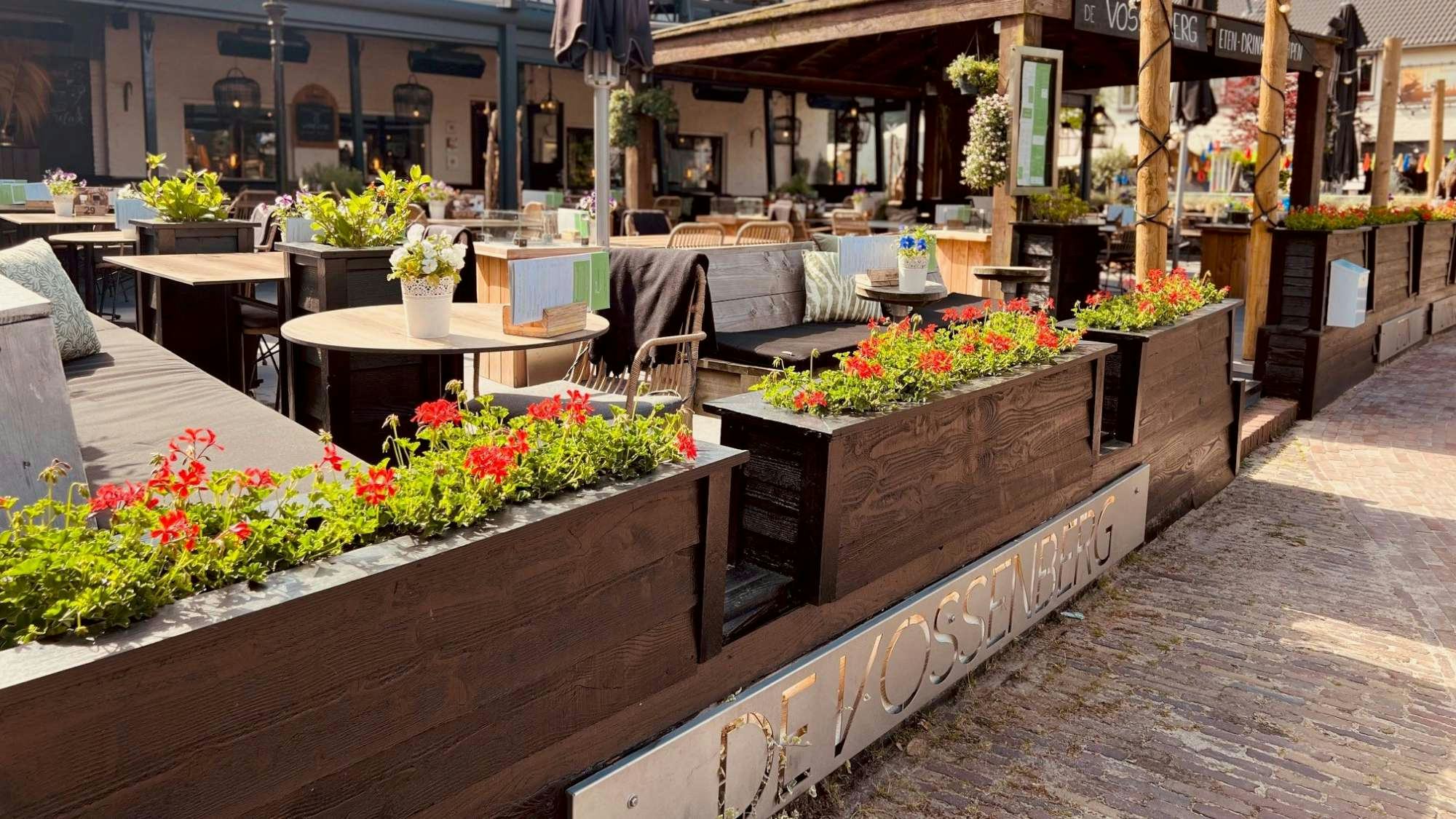 De Vossenberg is een mooi, modern bedrijf aan een druk kruispunt. Het terras ziet er uitnodigend uit bij het langsrijden, en vráágt om te stoppen voor een bezoek.