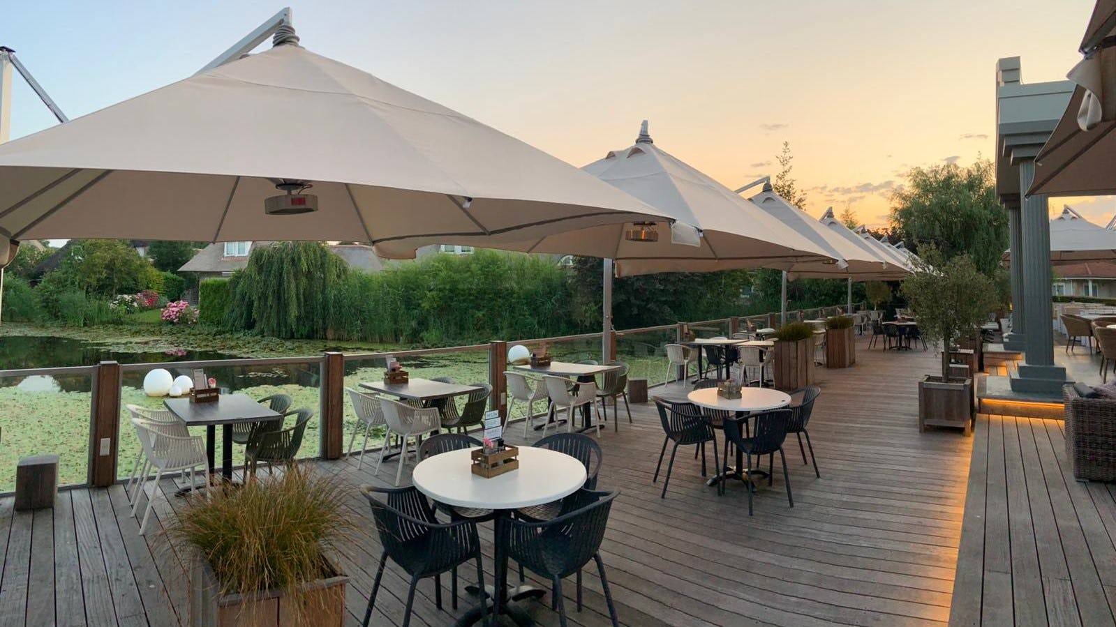 Restaurant Duinhoek ligt als een ware oase op een eilandje in een grote vijver op Resort Città Romana.
