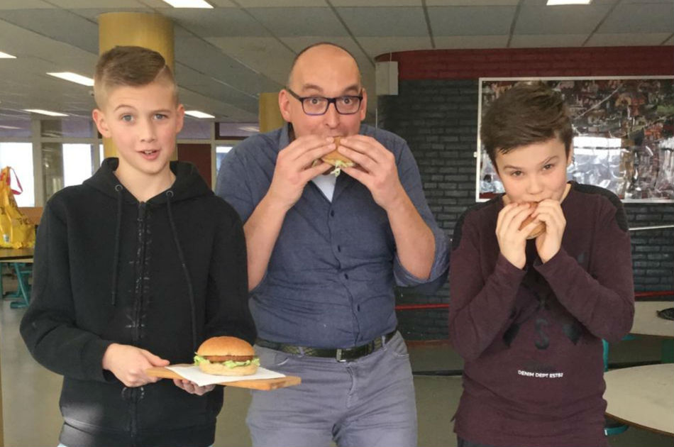 Vital4Skool heeft de ve-GO burger gelanceerd, een vegetarische burger bedacht door leerlingen van St Michael College in Zaandam. 'Hij lijkt op een echte hamburger en smaakt ook zo.'