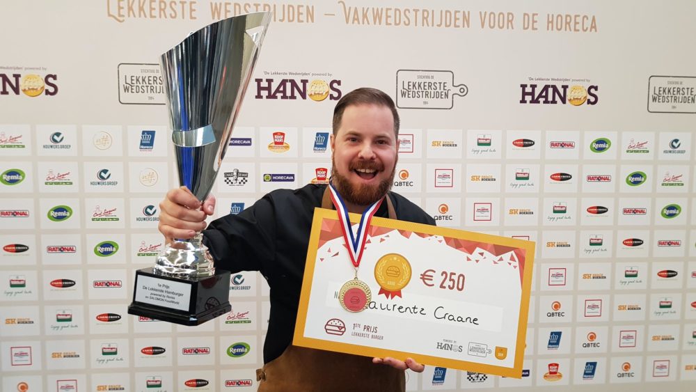 Laurentz Craane van Iveau Burger & Wijnbar is tijdens de Horecava winnaar geworden van de Lekkerste Hamburger 2019. Daarmee prolongeert de chef zijn titel van vorig jaar. Het was de derde keer dat hij als winnaar het podium van de Lekkerste Wedstrijden verliet.