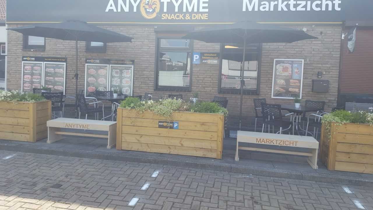 Een echte AnyTyme-vestiging, zo zien we bij AnyTyme Marktzicht. Gasten kunnen hier naast friet en snacks genieten van een uitgebreid assortiment broodjes, menu's en salades.