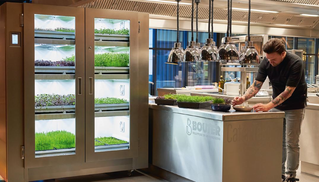 We spotten de Urban Cultivator, een alles-in-een moestuin waarin 100% biologische microgroenten en kruiden verticaal worden gekweekt, in driesterrenrestaurant De Librije.