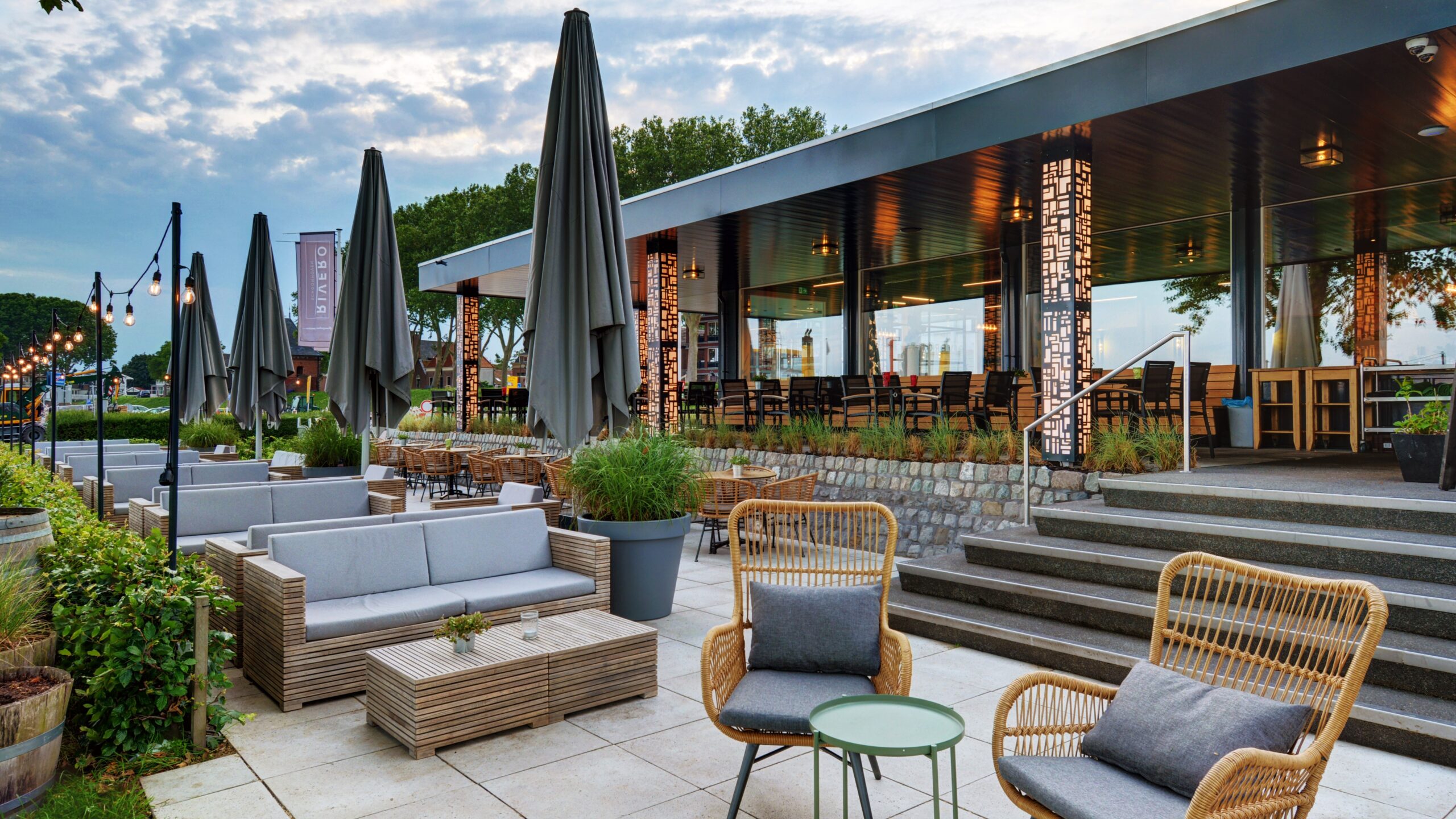 De ligging van het terras van Rivero aan de rivierzijde is voortreffelijk. Gasten hebben een mooi uitzicht en er is veel zon. Alles ziet er verzorgd en netjes uit tot in detail en nodigt uit om te gaan zitten. De terrasindeling is speels en verrassend.