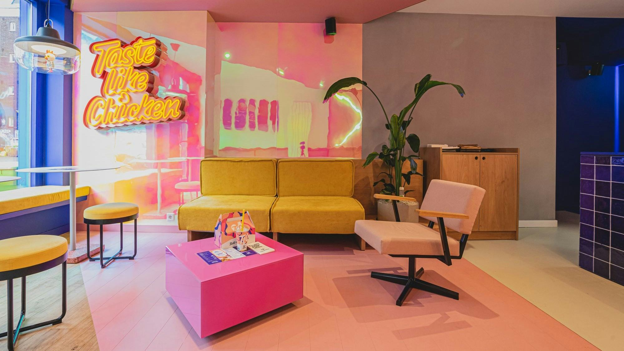 Taste Like Chicken (TLC) is onlangs geopend in Amsterdam. Het vegan restaurant maakt kipklassiekers zonder kip. Het interieur knalt je tegemoet.