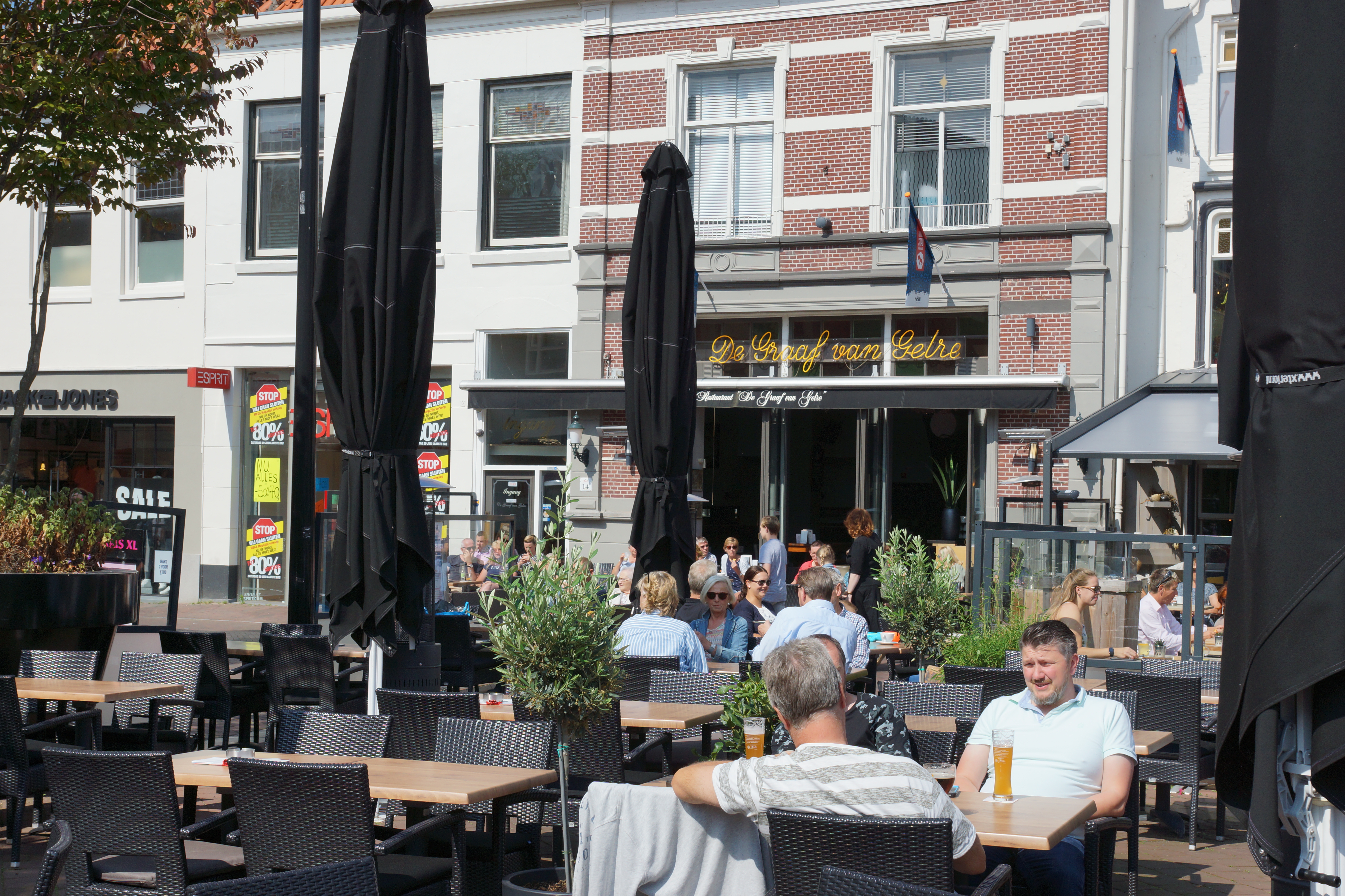 Wie op het terras van De Graaf van Gelre gaat zitten, ziet aan de overkant van dit plein, tweevoudig Terras Top 100-winnaar De Boterlap liggen. In goed gezelschap dus hier. Het terras van De Graaf oogt netjes en schoon. Kussentjes zitten goed en zijn ook heel netjes: alles is heel en de tafels staan recht.