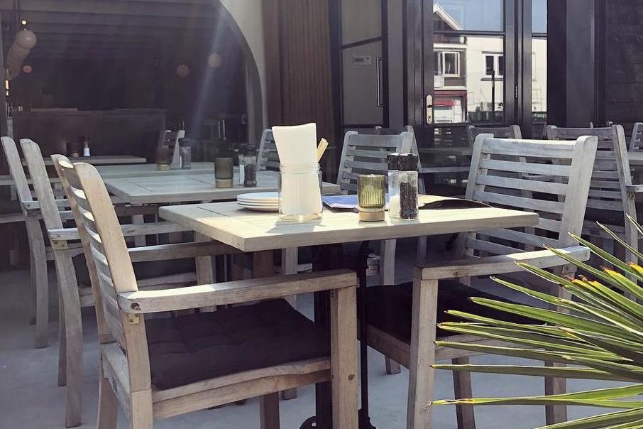 Om op het terras van Zuyver te komen moet je via een trappetje omhoog. En bovenaan dat trappetje worden we al opgewacht door een fris uitziende medewerkster met een grote, gastvrije glimlach.