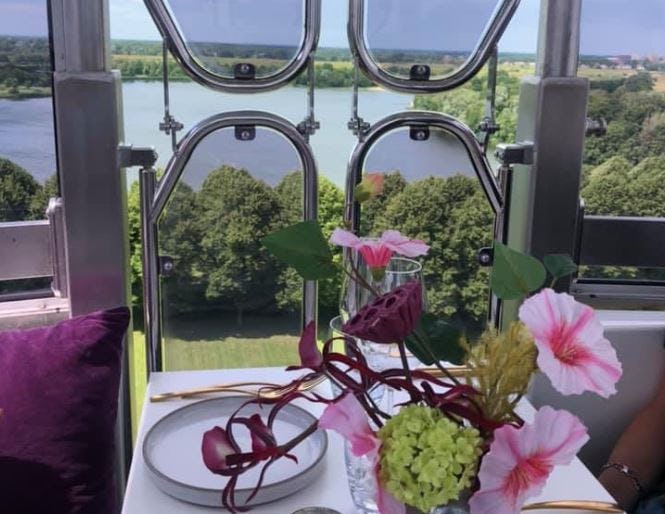 Uit eten in een reuzenrad. In Den Bosch gaat vanaf 2 juli ook een reuzenrad draaien waarin gasten kunnen lunchen, borrelen dineren of high teaen. In Veendam is al een dergelijk 'draaiend terras' te vinden. In Den Bosch kun je in het reuzenrad eten tot...