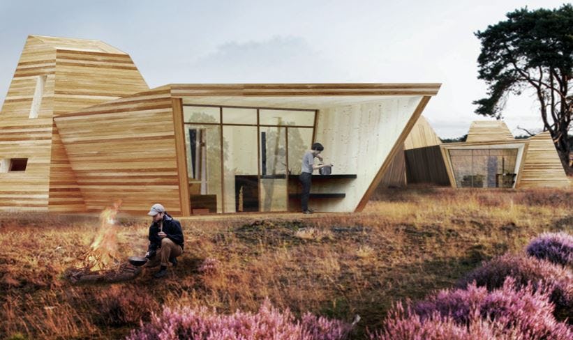'Het is best bijzonder dat we blijven bouwen met beton, staal, isolatiematerialen, lijm- en kitsoorten die een enorme CO2-uitstoot hebben. Vaak ook ongezond zijn en veel fossiele energie vergen om te maken.' Houten hotelcabins zijn een duurzaam alternatief.