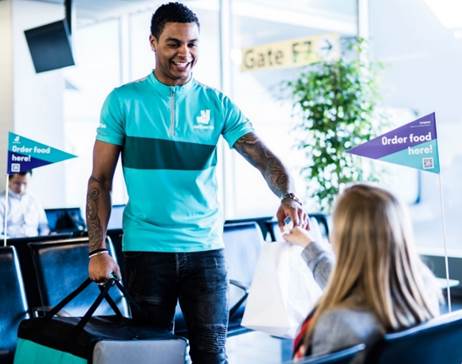 HMSHost, Schiphol en Deliveroo gaan samenwerken. Passagiers kunnen voortaan eten laten bezorgen terwijl ze wachten bij hun gate.