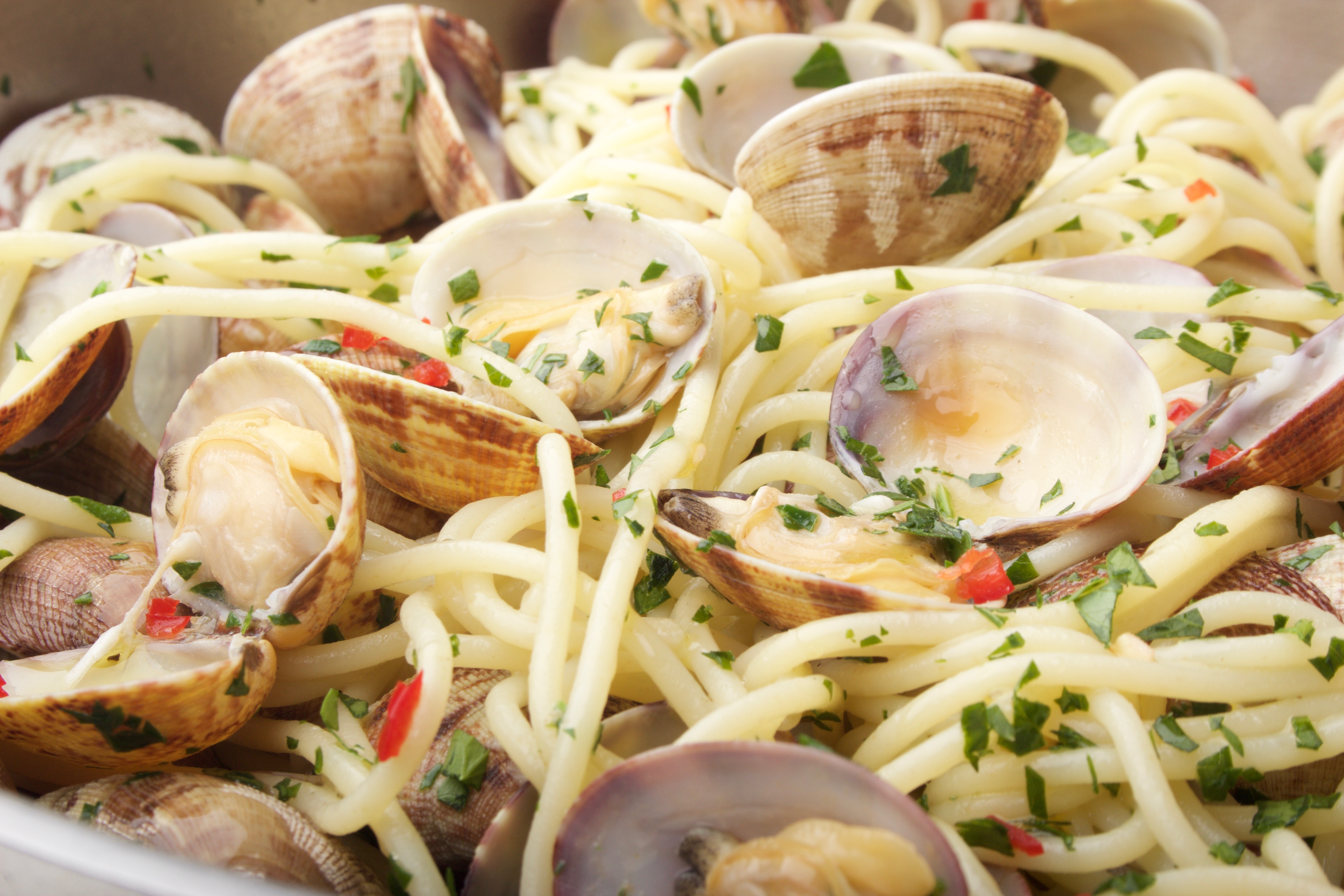 recept vongole: Vis & Seizoen: Spaghetti alle vongole voor de horeca . Vongole is een schelpachtige die ook wel tapijtschelp wordt genoemd.Het recept...