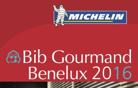 Maandag 9 november maakte Michelin haar Bib-Gourmands voor 2016 bekend voor de Benelux. In Nederland zijn nu 133 restaurants met een Bib-Gourmand, 25 van hen zijn nieuw. De Bib Gourmand is een beloning van Michelin voor een kwaliteitskeuken voor een prijs van maximaal 37 euro voor een driegangen keuzemenu.