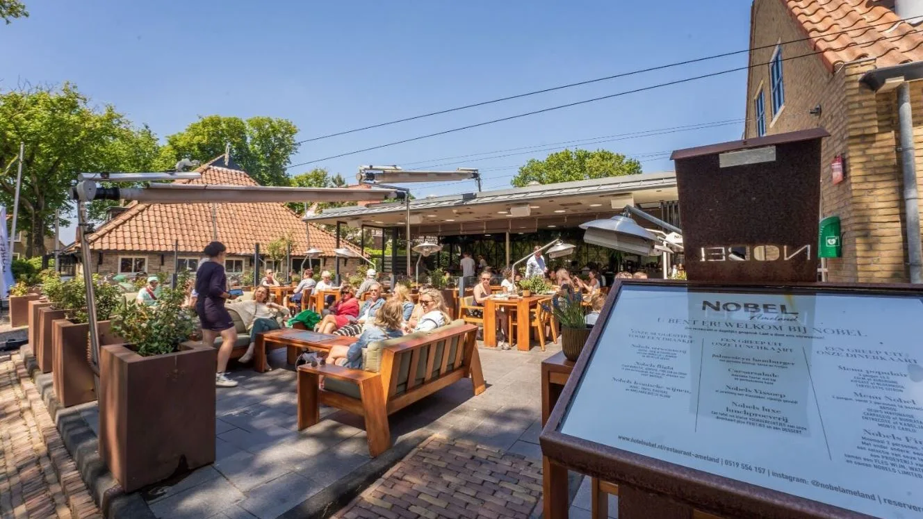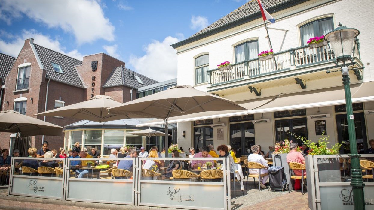 Nieuwkomer hotel De Lindeboom in Den Burg verwelkomt gasten met een prachtig verzorgd terras, compleet met plantjes op tafel en de mogelijkheid tot kleedjes en verwarmde kussens op verzoek. De jury neemt plaats op een drukke dag met live muziek, de aardige en snelle bediening valt direct op. De medewerkers zijn gekleed in nette bedrijfskleding met het logo en bijpassende jassen voor koelere momenten.