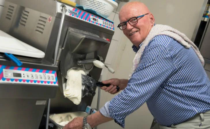 'De term ambachtelijk ijs wordt misbruikt', zegt Frans Verstappen, eigenaar van Gelato Di Casa in Montfort en opa van van Formule 1-coureur Max Verstappen. 'Steeds meer bedrijven zeggen dat ze ambachtelijk ijs verkopen. 'Dat is onterecht. Het gaat vaak om 'pottendraaiers'. Ambachelijk ijsbereider Frans Verstappen: 'Je moet een eerlijk verhaal vertellen.'