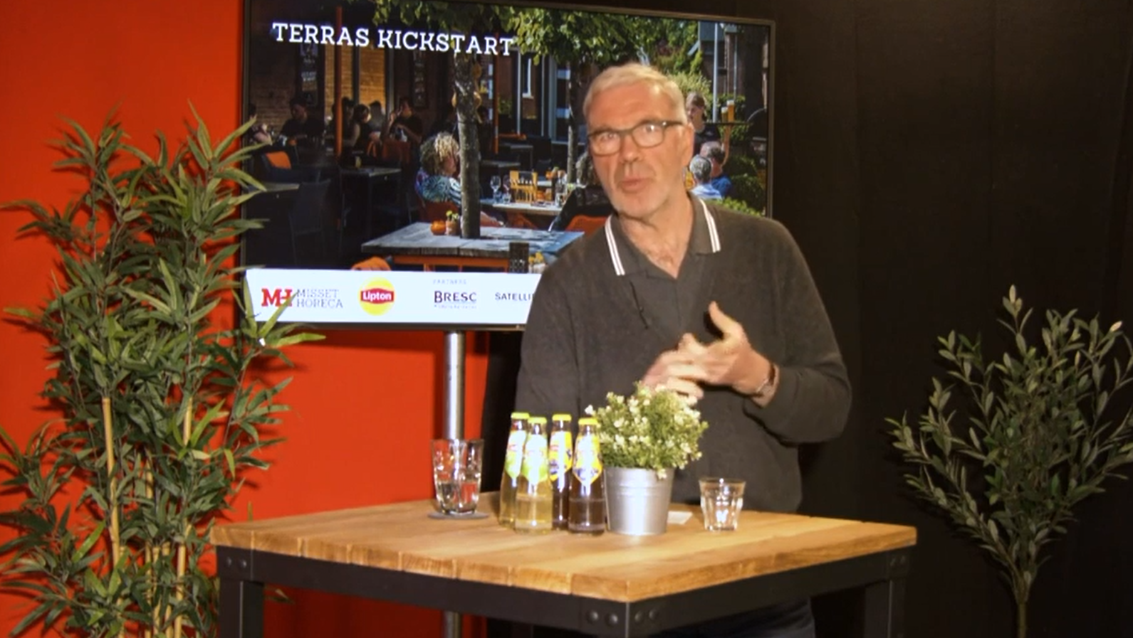 Genieten van wijn begint volgens Harold Hamersma bij een goed glas. 'Het heeft een voetje, een pootje en een kelkje, zodat je kunt walsen. En het is schoon.' Het was dinsdag 16 maart één van zijn adviezen tijdens de Terras Kickstart voor het serveren van een goede terraswijn. Andere tips: let op de temperatuur, zorg dat medewerkers kunnen vertellen over de wijn en durf te experimenteren.