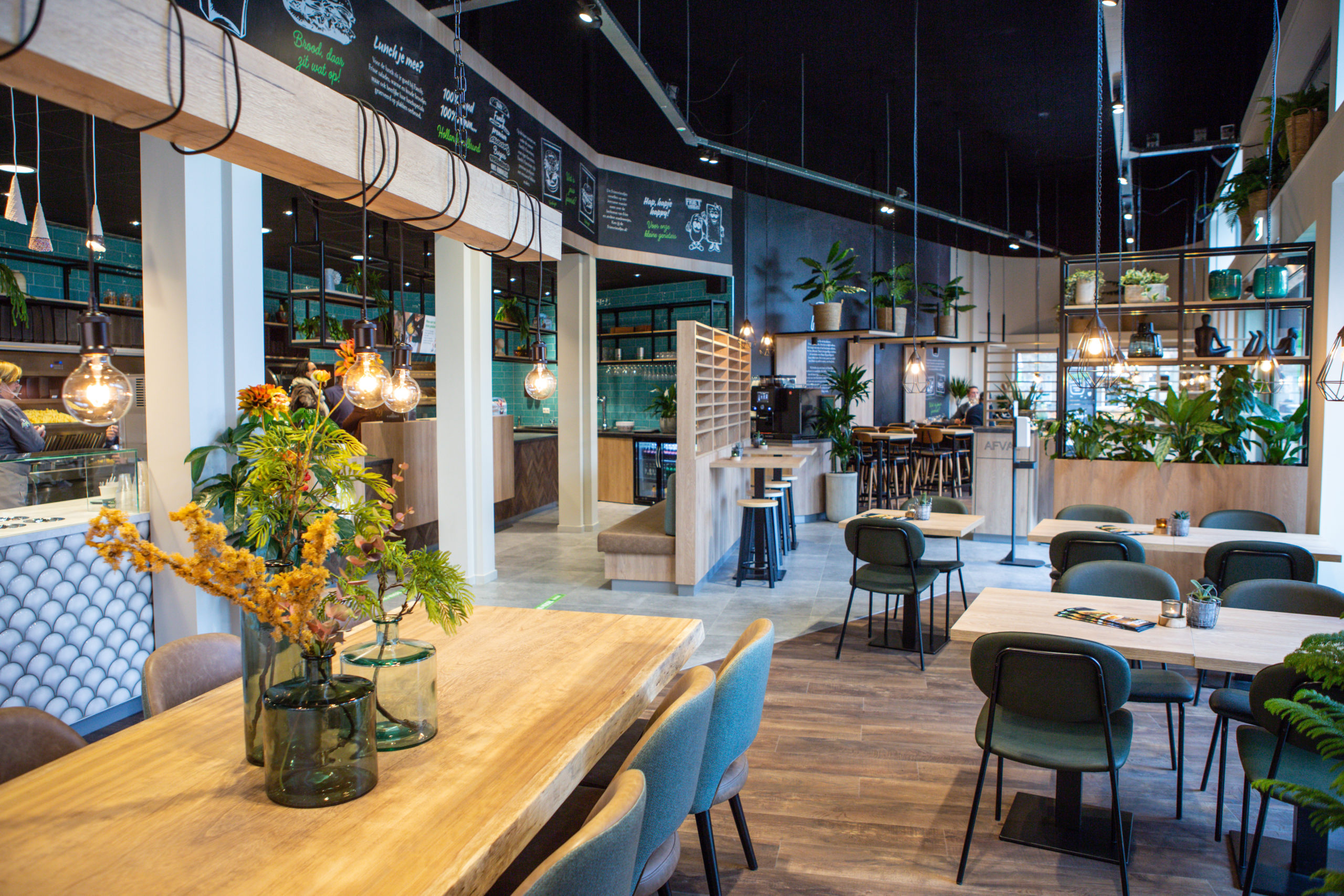Edwin en Nathalie Voets openden na Restaria Boswinkel op 1 september hun tweede zaak in Enschede: Restaria Het Stroink. Wat opvalt: de cafetaria heeft veel groen in het interieur.