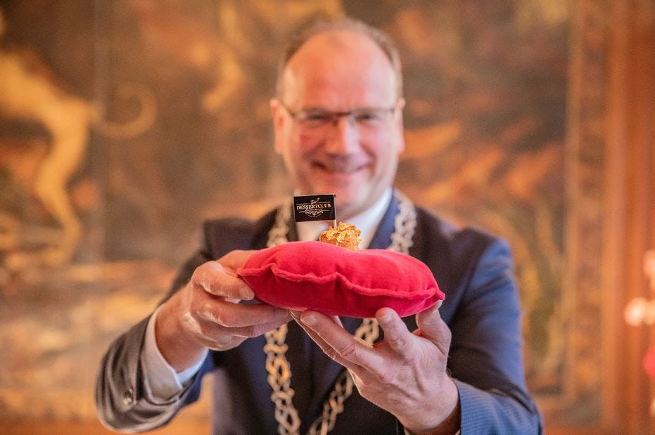 In Paleis het Loo werd maandag 28 september de zoete bitterbal gepresenteerd door Ton Heerts, de burgemeester van Apeldoorn, toppatissier Bart de Gans en Tim Koldenhof van De Dessertclub.