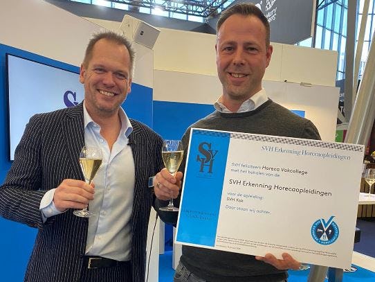 Het Horeca Vakcollege heeft maandag 13 januari op de Horecava het SVH-erkenningskeurmerk ontvangen voor de brancheopleiding SVH Kok.