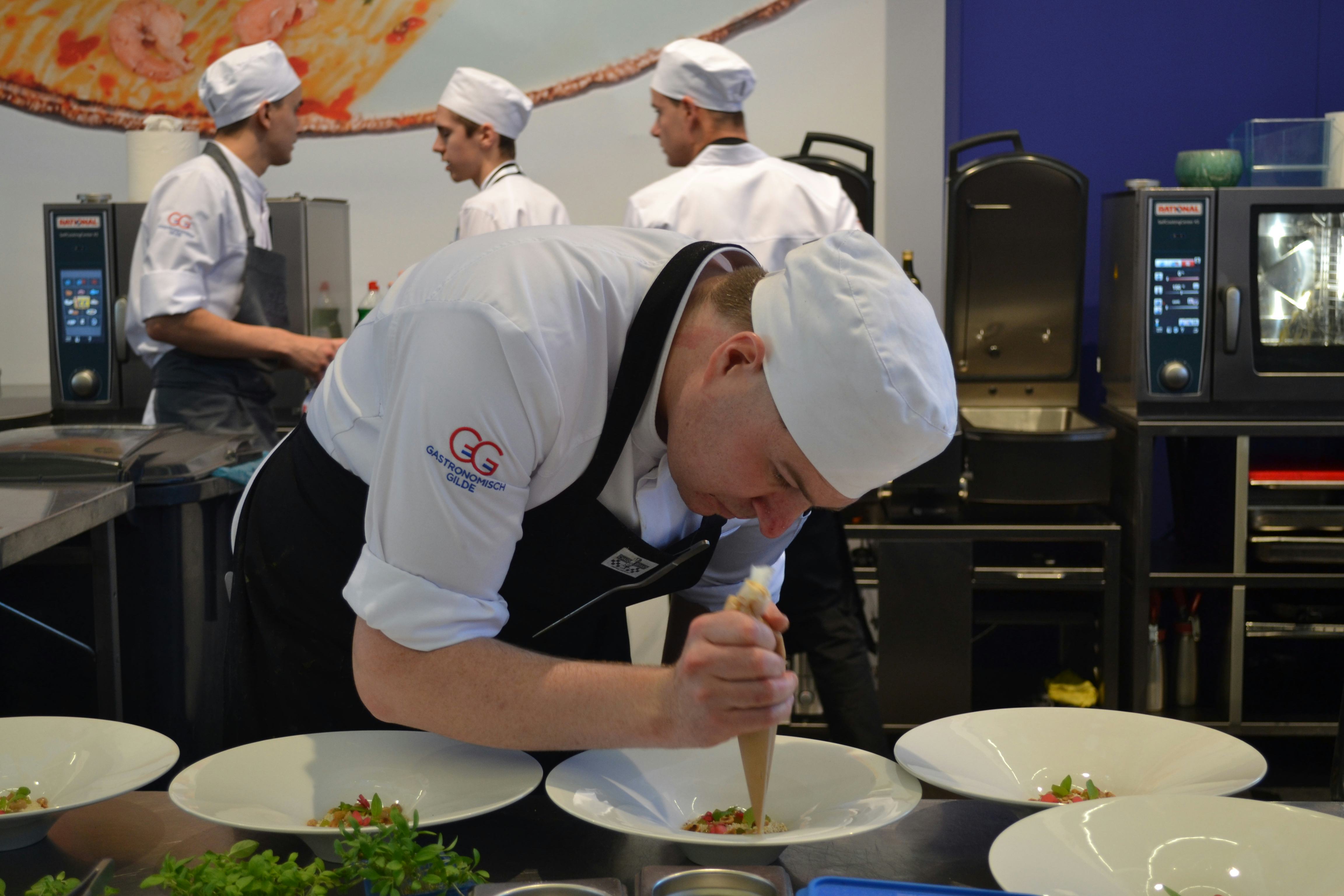 De strijd om het Bronzen Koksmes is in volle gang op de Horecava. Acht teams nemen deel aan het Nederlands kampioenschap voor leermeesters en hun leerling.
