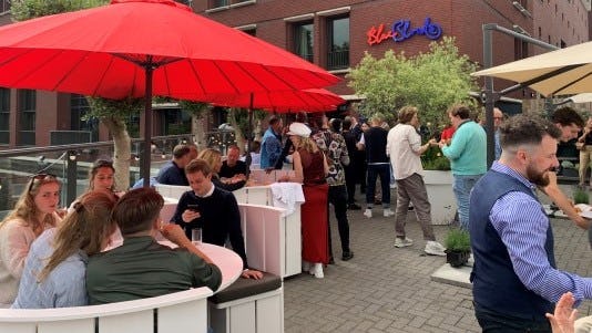 BlueBlood in Den Haag heeft deze week haar nieuwe terras geopend. General Manager Lewis McKenzie, tevens finalist in de World Class Competition - sabreerde de champagne om de champagnetoren te vullen, waarmee het vernieuwde terras feestelijk werd geopend.