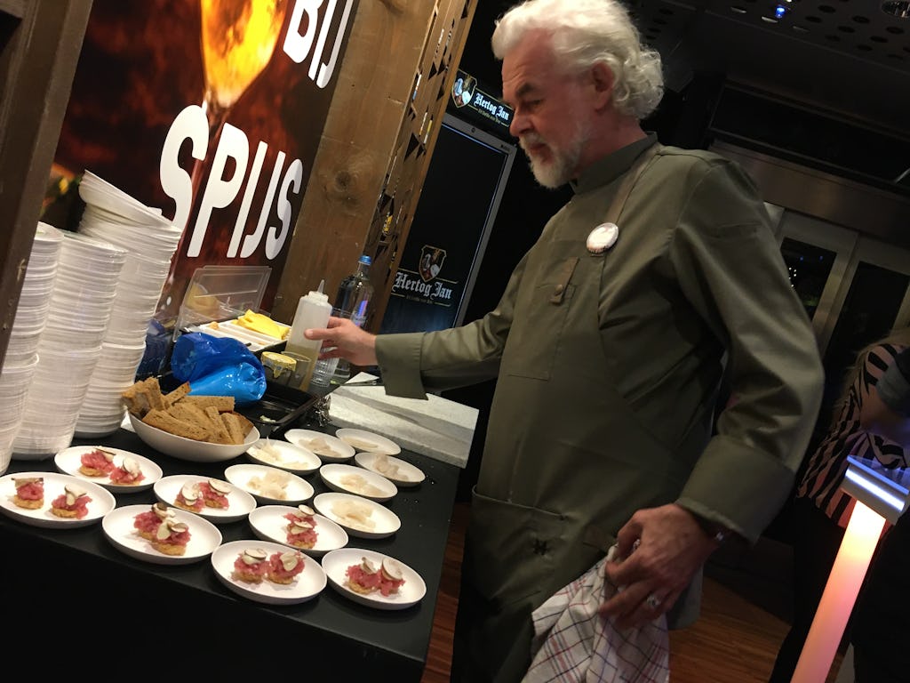 Thijssen verzorgde ook een bier-spijscombinatie met Bud. 'En daar moet je dus goed naar kijken, want Bud heeft een lage smaakintensiteit en weinig aroma's. Daar moet dus geen intens gerecht tegenover staan.'