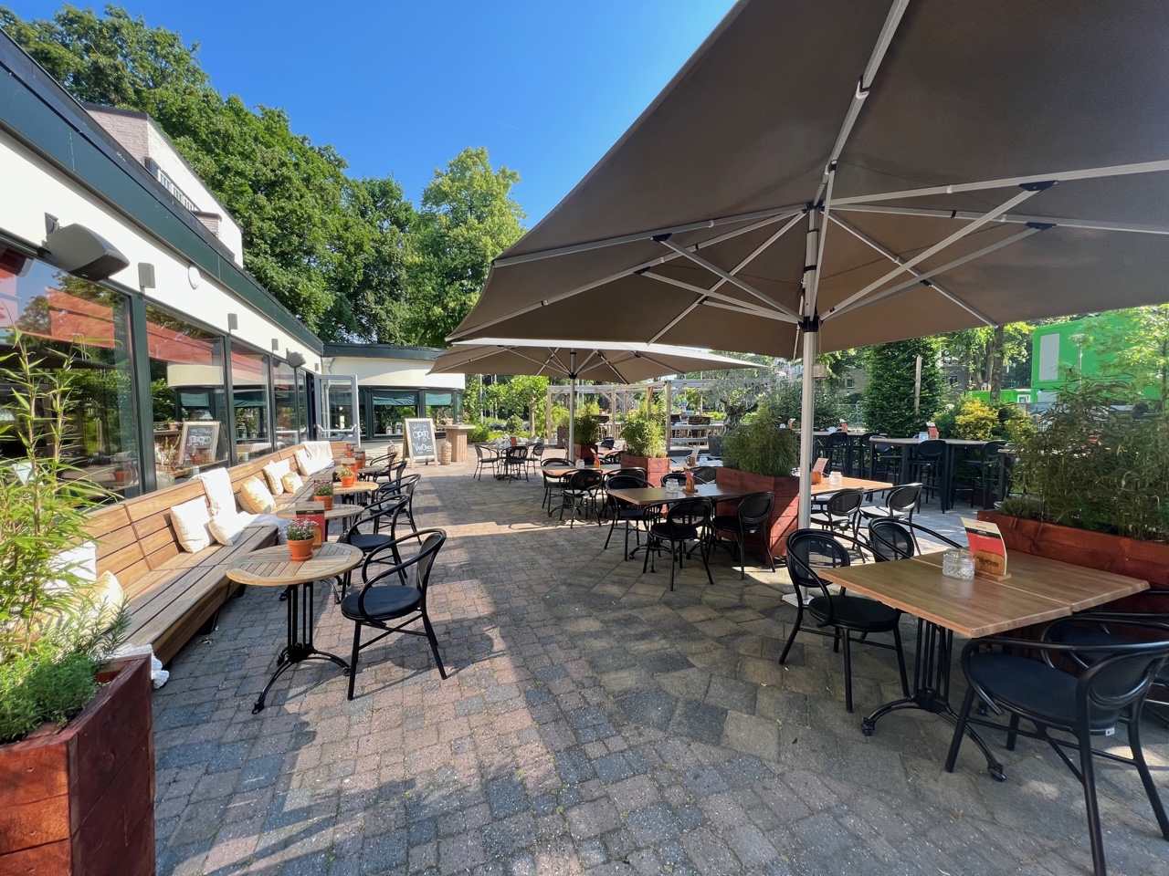 Het terras van 't Wapen van Stellendam ziet er heel uitnodigend uit. Alles oogt niet alleen schoon, het ís ook schoon.