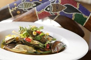 Mosselen kun je op talloze manieren bereiden. Eén manier is om het met Thaise ingrediënten te doen. Is dat Australisch? Ja hoor, Australisch koken is fusion koken. Thaise ingrediënten passen daar uitstekend bij. Fusion koken is overigens een erg gedateerde term. In Australië hebben ze het liever over de ‘modern Australian cuisine’. Dat is de keuken die zich in de jaren vijftig en zestig (van de vorige eeuw) ontwikkelde, toen het land overstroomd werd door emigranten uit allerlei landen en culturen. Green lip mosselen, die in dit gerecht gebruikt worden, komen uit Nieuw-Zeeland.
