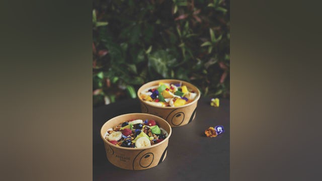 The Avocado Show Boutique heeft plek voor zo’n 15 gasten, het terras verdubbelt dat. Een – in eerste instantie – samenwerking met Foodora brengt The Avocado Show in een cirkel van 2.5 kilometer naar iedereen toe. ‘Zo kunnen veel meer gasten en locals in Amsterdam van The Avocado Show genieten. Om de kunstige avocadocreaties net zo mooi op de keukentafel te krijgen als in The Avocado Show was nog een flinke uitdaging. Op maat gemaakte packaging bleek de oplossing. Door de verpakking en de gerechten perfect op elkaar aan te sluiten, kunnen gerechten goed beschermd vervoerd worden. We zagen ook dat ons menu het beste tot zijn recht komt op een donkere ondergrond, dus kozen we voor donkere en duurzame packaging om onze stijl van foodfotografie en de merkfilosofie terug te laten komen in elke bestelling.’