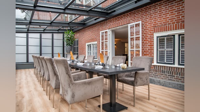 Over het oude terras werd een serre geplaatst. Deze kan in de zomer geopend worden, waardoor de mogelijkheid blijft bestaan om buiten te tafelen. Daarnaast kan de serre ook worden afgesloten waardoor er een gezellige private dining ruimte ontstaat met plaats voor maximaal 24 gasten.