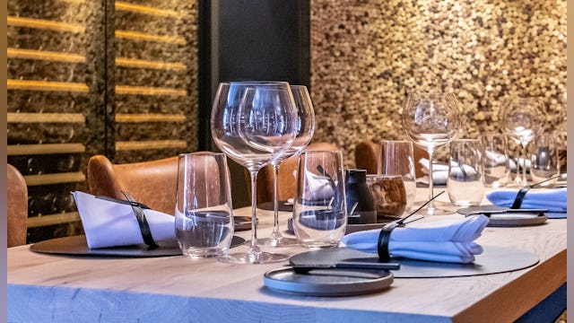 Ook in de nieuw ingerichte wijnkamer kunnen groepen tot maximaal 8 gasten dineren.