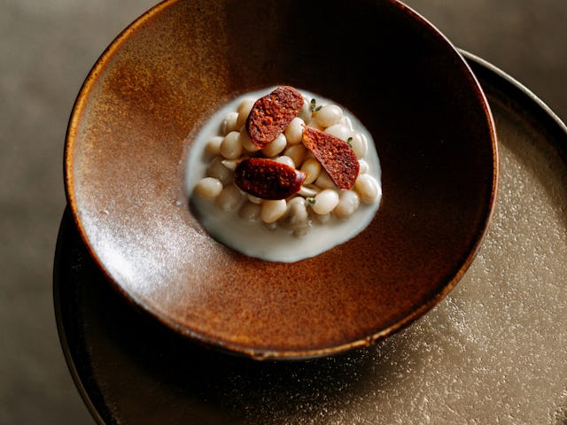 Maar daar stopte het niet; Van Kranen vond het tijd om het roer helemaal om te gooien. ‘Binnen Bord’Eau hadden we voor de crises het menu al ingedeeld in ‘Eau’,  ‘Flore’ en ‘Faune’. De bereiding van groente en vis vond ik altijd al spannender. Tijdens de coronatijd heb ik, los van de presentaties, ook veel producenten bezocht. Daar kwam ik erachter, en dat wist ik eigenlijk al, dat de manier van boeren een enorm verschil voor de smaak kan maken. Maar als restaurant is dat best lastig, je moet langere tijd verzekerd zijn van aanvoer.’