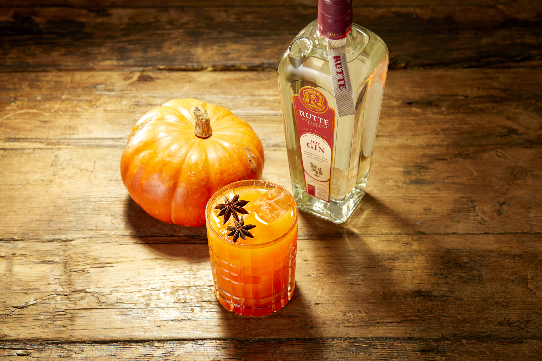 De pompoen in de Pumpkin Sour voegt warmte toe aan de Classic Sour. De subtiele aardse tonen van wortel en pompoen spelen perfect samen met de vleugjes venkel en zoethout van Rutte's Dry Gin.