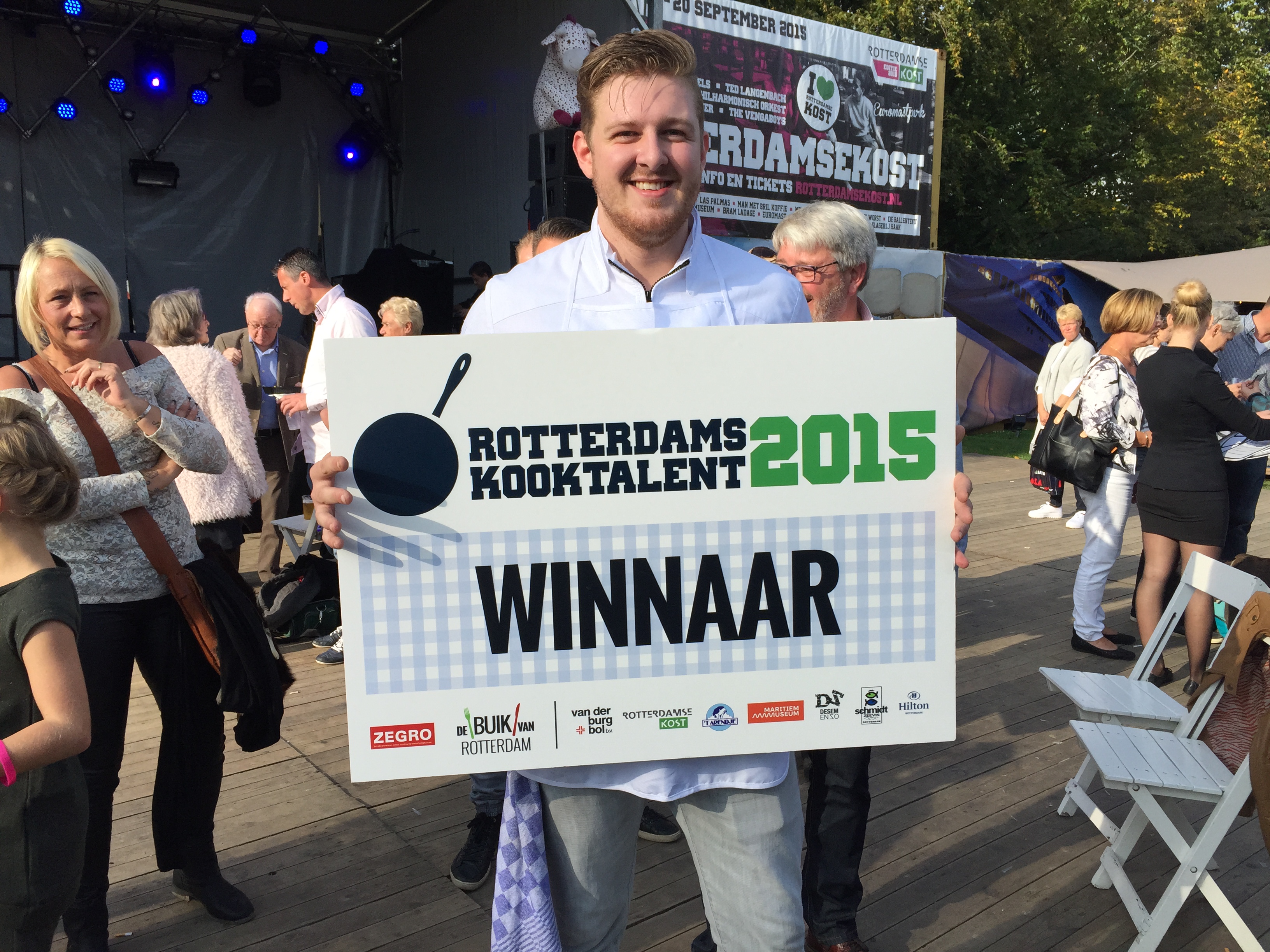 Justin Koopman (24) van restaurant Zeezout is zondag uitgeroepen tot Rotterdams Kooktalent van 2015. Koopman imponeerde de jury met gebakken poon, salade van rabarber en biet en een krokantje en beurre blanc.