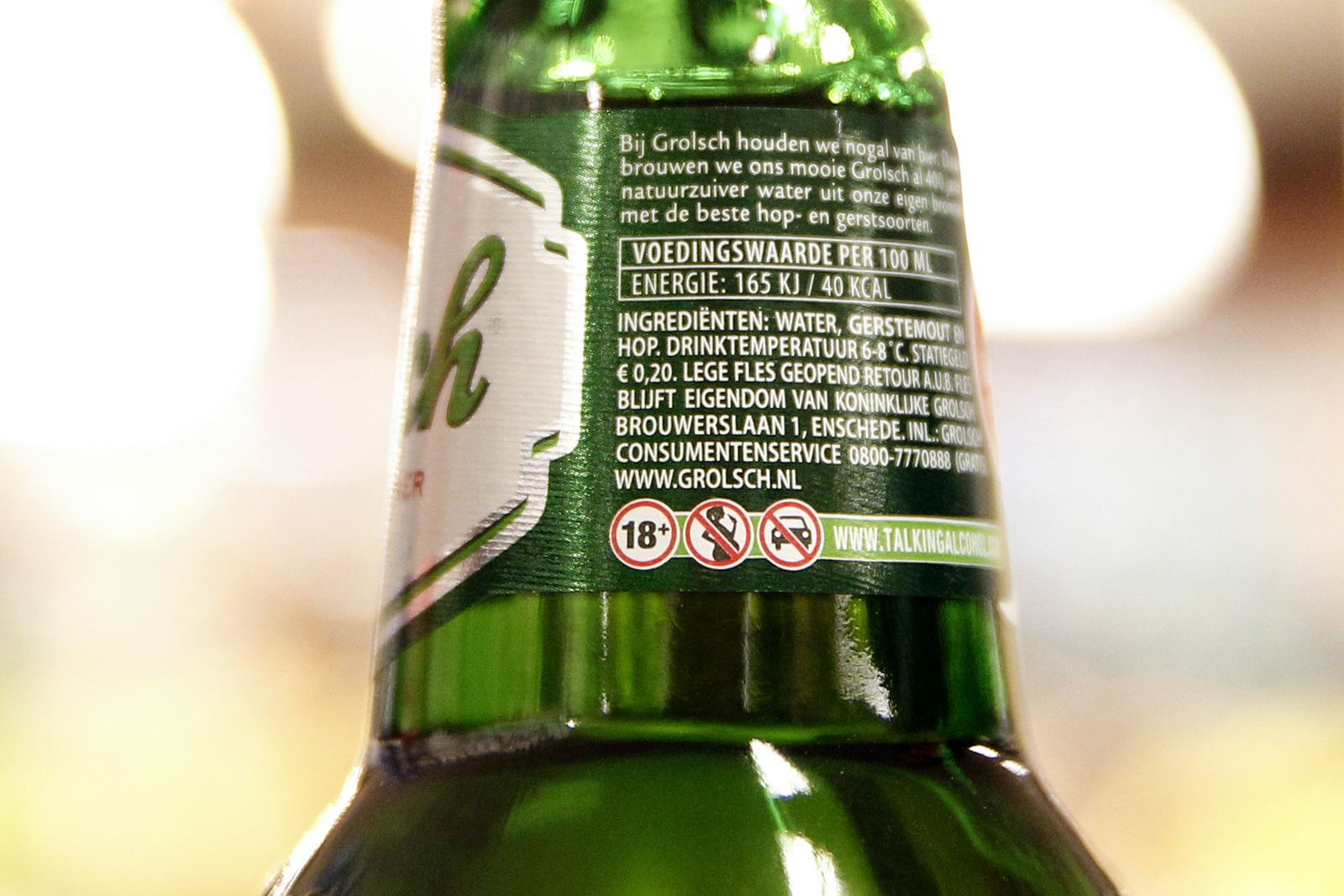 Grolsch gaat vanaf 1 januari als eerste Nederlandse bierbrouwer op al zijn bierverpakkingen, en dus ook de flesjes, drie groepen waarschuwen voor het ...