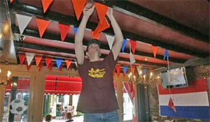 De brandweer controleert tijdens het EK voetbal de brandveiligheid van oranjeversieringen in cafés. Ook worden de brandblussende middelen en de ...