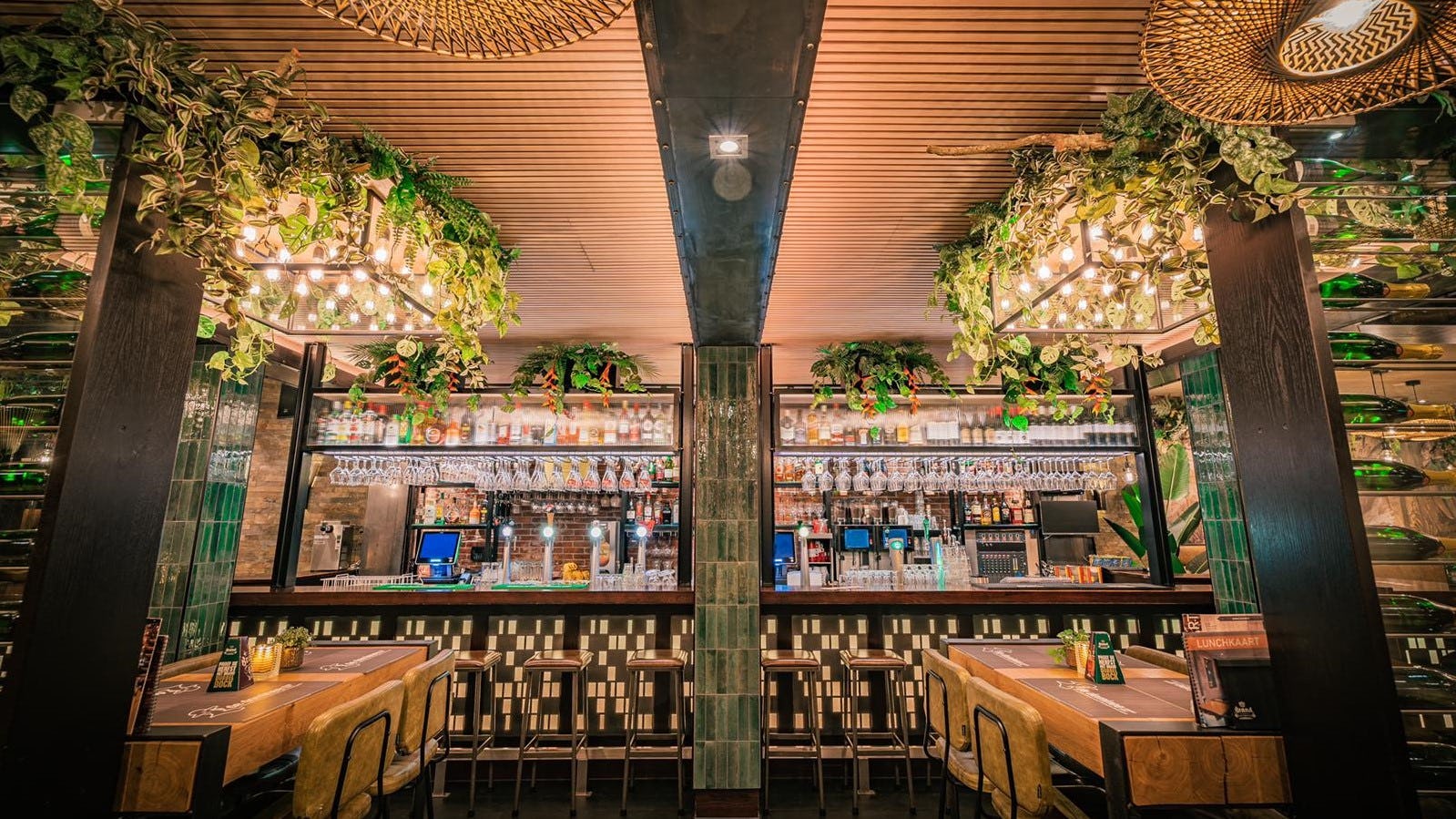 Het nieuwe Nikkei-cuisineconcept Marû is een spraakmakende hotspot in Zandvoort. Waar je blik ook op valt, je ziet telkens iets nieuws in het interieur. 'Het is anders dan anders, een tikkie gek soms. Eerder een barfront van stof gezien?', vraagt mede-eigenaar Pim Serné.