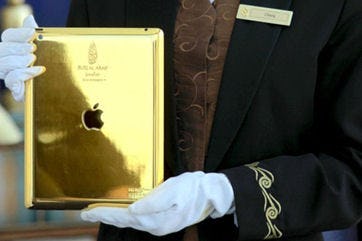 Hotel Burj Al Arab in Dubai biedt haar gasten een bijzondere dienst aan: ze mogen gebruik maken van een 24-karaats gouden iPad. De iPad doet onder meer ...