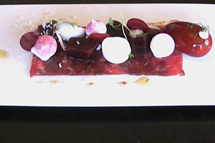 De beste asperge amuse van 2013 bevat naast asperge coquille, oester en verschillende zeemineralen. De maker ervan, Sjako Minderhoud, won met dit ...