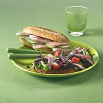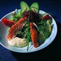 Ingrediënten: 1 ui 1 grote vleestomaat 4 eetl. slaolie 5 eetl. zoetzure rode pepersaus (chilisaus) 200 g rundergehakt (of half-om-half gehakt) 1 eetl. gehaktkruiden 2 eetl. paneermeel 2 eetl. koffieroom 3 eetl. fijngehakte peterselie zout, peper