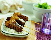<strong>Ingrediënten</strong> • snufje peper (versgemalen) • snufje zout • 1 ei • 1 teentje knoflook (geperst) • 1 theelepel djinten (= komijn) • 1 theelepel ketoembar (= koriander) • 1 theelepel sambal (oelek) • 1/2 theelepel koenjit (= geelwortel) • 100 g kokos (geraspte) • 2 eetlepels olie (arachide) • 500 g gehakt • 8 houten satéprikkers